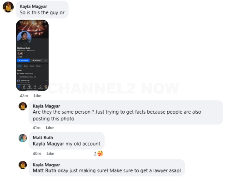 She suspected her ex-boyfriend, Matthew Ruth, but initially declined to pursue charges.